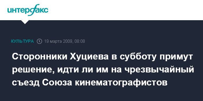 Москва. 19 марта. INTERFAX.RU - Сторонники кинорежиссера Марлена Хуциева пока не собираются идти на внеочередной съезд Союза кинематографистов, который созывается 30-31 марта по инициативе Никиты Михалкова, но окончательное решение примут в субботу на собрании членов организации из Москвы и области.