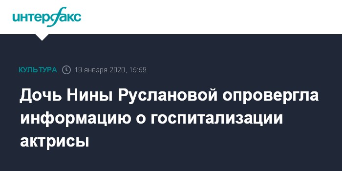 Москва. 19 января. INTERFAX.RU - Дочь народной артистки РФ Нины Руслановой Олеся Рудакова не подтвердила информацию СМИ о госпитализации актрисы.