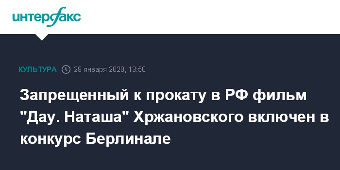 Ранее Минкультуры РФ отказало в выдаче прокатного удостоверения четырем частям кинопроекта "Дау" Хржановского в связи с тем, что они содержат "материалы, пропагандирующие порнографию". Прокатное удостоверение не выдано: "ДАУ. Наташа", "ДАУ. Новый человек", "ДАУ. Нора Сын", "ДАУ. Саша Валера".