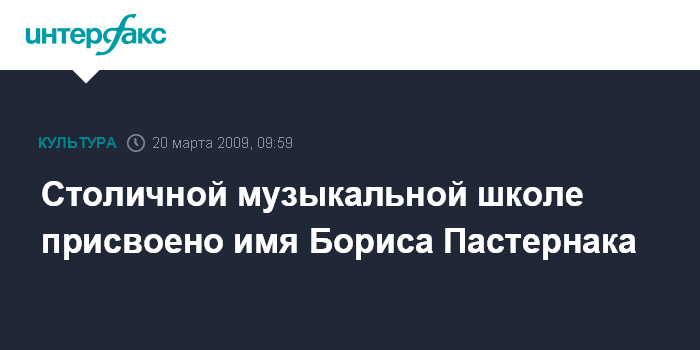 Там рассказали, что, таким образом, городские власти согласились с решением трудового коллектива музыкальной школы и ходатайством муниципального собрания внутригородского муниципального образования "Ново-Переделкино", где находится школа, о присвоении ей имени Пастернака.