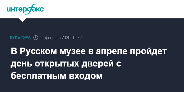 Москва. 11 февраля. INTERFAX.RU - День открытых дверей пройдет в Русском музее 25 апреля, сообщила на пресс-конференции, посвященной 125-летию музея, замминистра культуры РФ Алла Манилова.