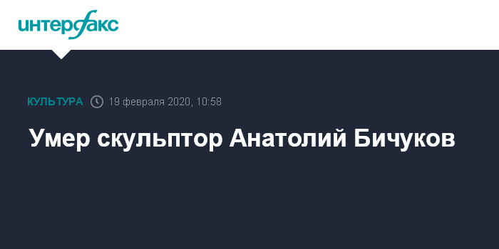 Москва. 19 февраля. INTERFAX.RU - Народный художник РСФСР, скульптор Анатолий Бичуков скончался в Москве на 85-м году жизни, сообщили "Интерфаксу" в Российской академии художеств.