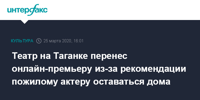 Театр на Таганке перенес онлайн-премьеру из-за рекомендации пожилому актеру оставаться дома