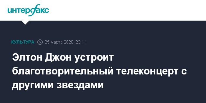 Москва. 25 марта. INTERFAX.RU - Британский певец и композитор Элтон Джон организует специальный концерт для сбора средств для борьбы против пандемии коронавируса, сообщило агентство Associated Press.