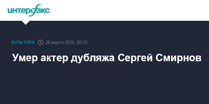 Москва. 25 марта. INTERFAX.RU - Актер Театра российской армии Сергей Смирнов, озвучивавший голливудских звезд, скончался на 38-м году жизни после тяжелой болезни, сообщили в театре.
