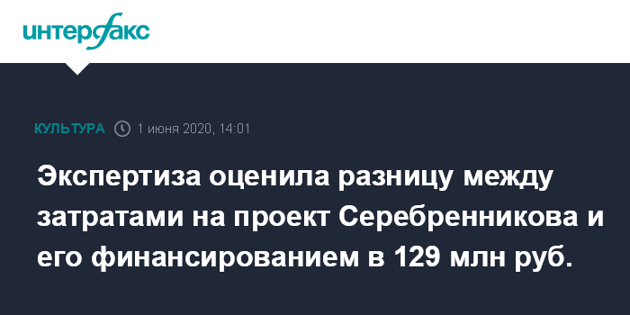 Экспертиза оценила разницу между затратами на проект Серебренникова и его финансированием в 129 млн руб.