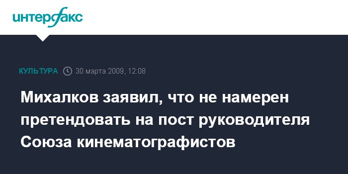 Москва. 30 марта. INTERFAX.RU - Режиссер Никита Михалков подтвердил, что он не претендует на пост руководителя Союза кинематографистов РФ.