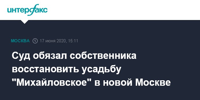 Москва. 17 июня. INTERFAX.RU - Арбитражный суд Москвы обязал собственника привести в порядок две часовни и главный усадебный дом усадьбы "Михайловское" в Троицком административном округе, сообщили в пресс-службе Мосгорнаследия.