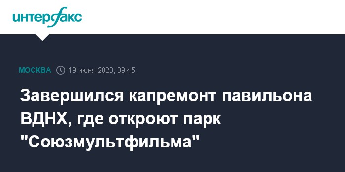 Москва. 19 июня. INTERFAX.RU - На ВДНХ в Москве завершен капитальный ремонт павильона "Семена", где откроется мультимедийный парк киностудии "Союзмультфильм", сообщил заместитель мэра Москвы Петр Бирюков.