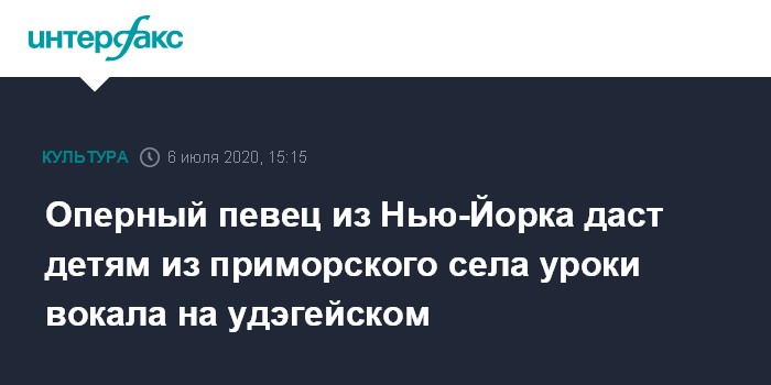 Оперный певец из Нью-Йорка даст детям из приморского села уроки вокала на удэгейском