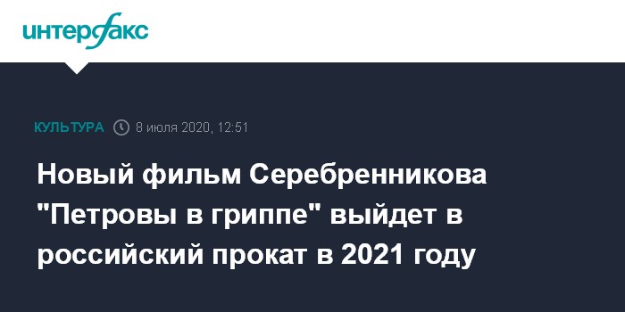 Москва. 8 июля. INTERFAX.RU - Фильм Кирилла Серебренникова "Петровы в гриппе", съемки которого завершились в январе, выйдет в российский прокат в 2021 году, изначально продюсеры сообщали, что картина выйдет на экраны до конца текущего года.