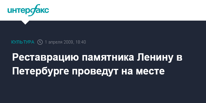 Санкт-Петербург. 1 апреля. INTERFAX.RU - Петербургский комитет по охране памятников принял решение о проведении реставрационных работ поврежденного вандалами памятника Ленину у Финляндского вокзала на месте.