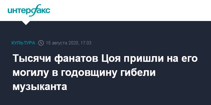 Москва. 15 августа. INTERFAX.RU - На Богословском кладбище Санкт-Петербурга в субботу собираются фанаты и почитатели таланта культового рок-музыканта, лидера группы "Кино" Виктора Цоя, погибшего 30 лет назад.