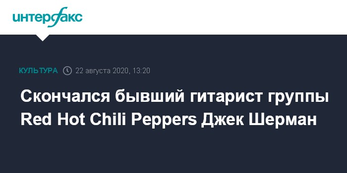 Москва. 22 августа. INTERFAX.RU - В США скончался музыкант Джек Шерман, он был гитаристом группы Red Hot Chili Peppers на их дебютном альбоме.