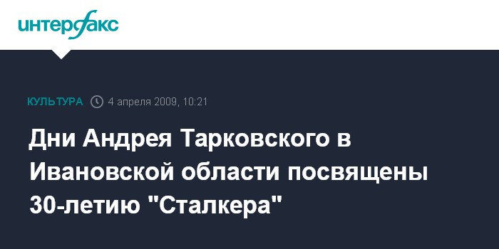 Дни Андрея Тарковского в Ивановской области посвящены 30-летию "Сталкера"