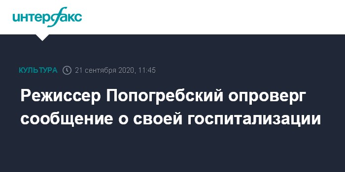 Москва. 21 сентября. INTERFAX.RU - Режиссер Алексей Попогребский опроверг сообщения о том, что он находился в реанимации.