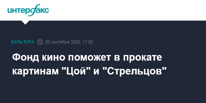 Москва. 28 сентября. INTERFAX.RU - Фонд кино сообщил, что окажет финансовую поддержку в прокате в III и IV квартале десяти фильмам, которые будут выпущены до конца 2020 года. Это решение было принято советом Фонда 22 сентября.