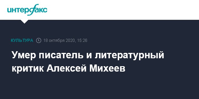 Москва. 18 октября. INTERFAX.RU - Умер писатель, литературный критик, бывший главный редактор журнала "Иностранная литература" Алексей Михеев, ему было 67 лет.