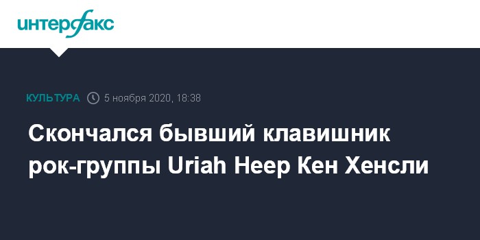 Москва. 5 ноября. INTERFAX.RU - Британский рок-музыкант Кен Хенсли скончался в возрасте 75 лет, сообщает "Би-би-си" со ссылкой на представителей экс-клавишника группы Uriah Heep.