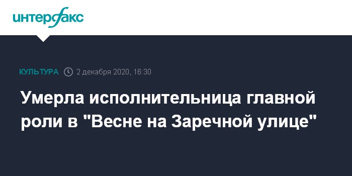 Умерла исполнительница главной роли в "Весне на Заречной улице"