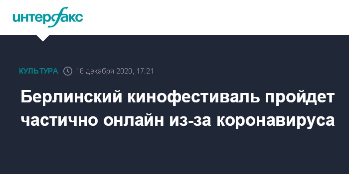 Москва. 18 декабря. INTERFAX.RU - Берлинский международный кинофестиваль, которые традиционно проходит в конце февраля, из-за пандемии коронавируса пройдет в двух форматах: в марте пройдет индустриальная часть фестиваля в онлайн-формате, а в июне - открытые показы фильмов для широкой публики.