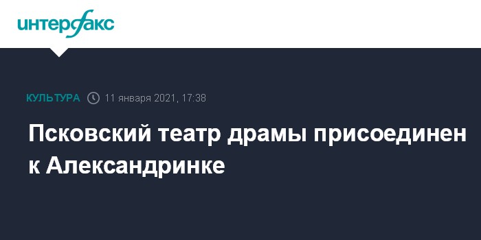 Москва. 11 января. INTERFAX.RU - Псковский академический театр драмы имени Пушкина получил федеральный статус и вошел в состав Национального драматического театра России - Александринского театра, сообщила пресс-служба региональной администрации. Театру вернули историческое название "Народный дом имени Пушкина".