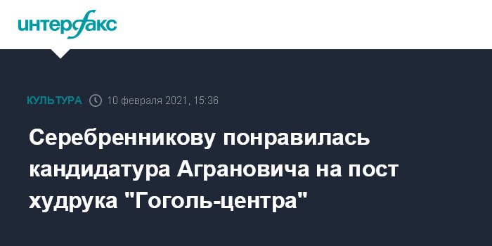 Москва. 10 февраля. INTERFAX.RU - Художественный руководитель "Гоголь-центра" Кирилл Серебренников назвал самой удачной кандидатуру Алексея Аграновича на пост худрука.