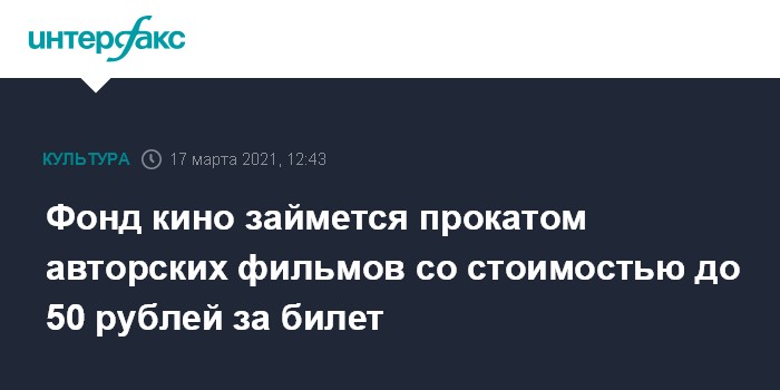 Фонд кино займется прокатом авторских фильмов со стоимостью до 50 рублей за билет