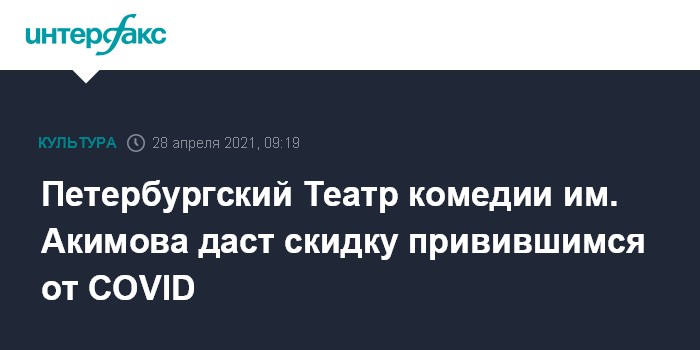 Петербургский Театр комедии им. Акимова даст скидку привившимся от COVID