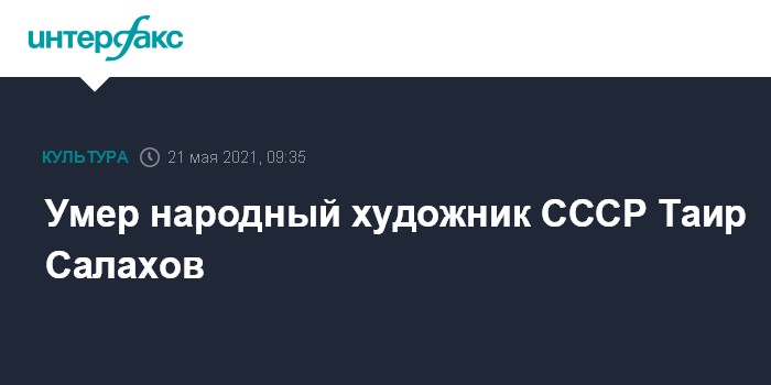 Москва. 21 мая. INTERFAX.RU - Народный художник СССР Таир Салахов скончался на 93-м году жизни, сообщила "Интерфаксу" дочь художника Айдан Салахова.