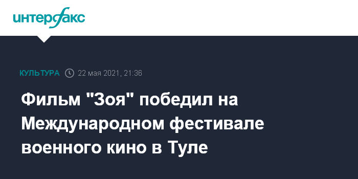 Москва. 22 мая. INTERFAX.RU - Картина "Зоя" удостоена главной премии в номинации "Лучший фильм" на XIX Международном фестивале военного кино имени Ю.Н. Озерова, который завершился в субботу в Туле.