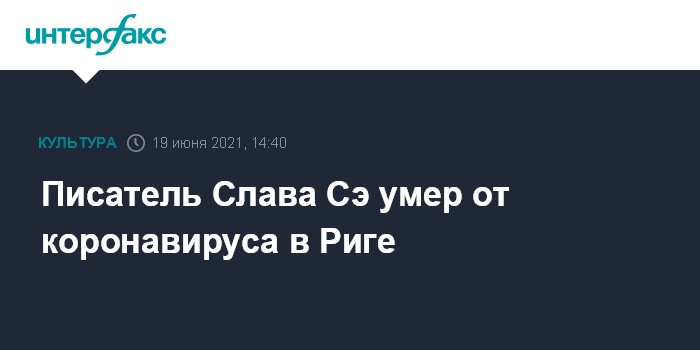 Москва. 19 июня. INTERFAX.RU - Писатель Вячеслав Солдатенко, известный под псевдонимом Слава Сэ, скончался в центральной больнице города Риги от коронавируса, сообщило издательство АСТ.