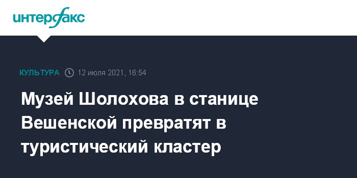 Москва. 12 июля. INTERFAX.RU - На территории Государственного музея-заповедника Михаила Шолохова в Ростовской области создадут туристический кластер, рядом с усадьбой писателя в Вешенской построят музейный квартал с библиотекой, кафе и информационным центром.