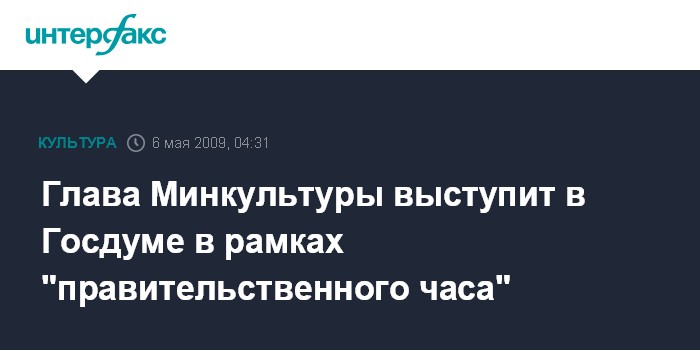 Глава Минкультуры выступит в Госдуме в рамках "правительственного часа"