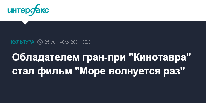 Москва. 25 сентября. INTERFAX.RU - Фильм "Море волнуется раз" режиссера Николая Хомерики стал обладателем гран-при 32-го открытого российского кинофестиваля "Кинотавр", церемония закрытия кинофестиваля прошла в субботу в Сочи.