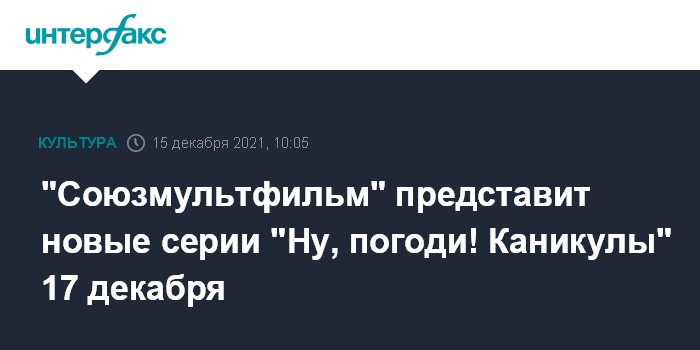 Москва. 15 декабря. INTERFAX.RU - Премьера первых четырех эпизодов нового мультсериала "Ну, погоди! Каникулы" состоится 17 декабря, первую серию покажут на медиаэкранах в крупных городах страны, сообщили "Интерфаксу" в пресс-службе киностудии "Союзмультфильм".