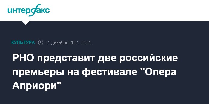 РНО представит две российские премьеры на фестивале "Опера Априори"