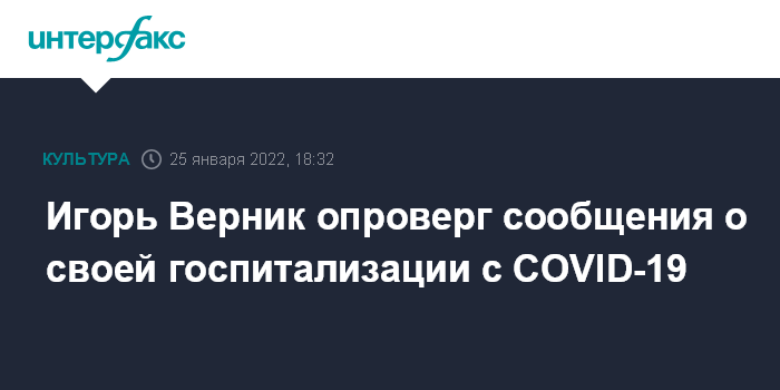Москва. 25 января. INTERFAX.RU - Народный артист РФ Игорь Верник опроверг "Интерфаксу" сообщение о своей госпитализации с коронавирусом.