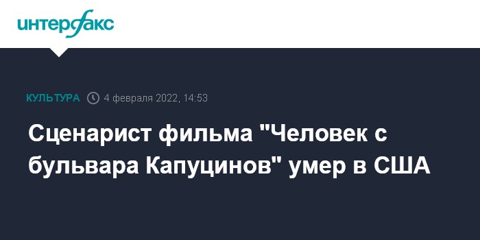 Сценарист фильма "Человек с бульвара Капуцинов" умер в США