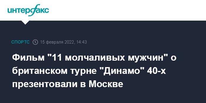 Москва. 15 февраля. INTERFAX.RU - Кинолента "11 молчаливых мужчин", посвященная турне московского футбольного клуба "Динамо" в Великобританию в 1945 году, была представлена журналистам во вторник в Москве.