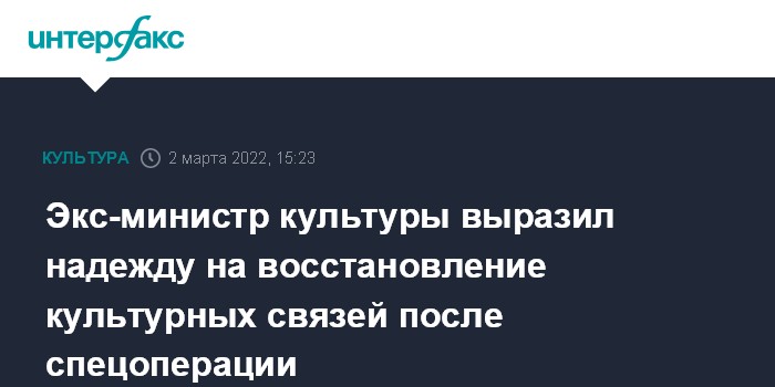 Экс-министр культуры выразил надежду на восстановление культурных связей после спецоперации