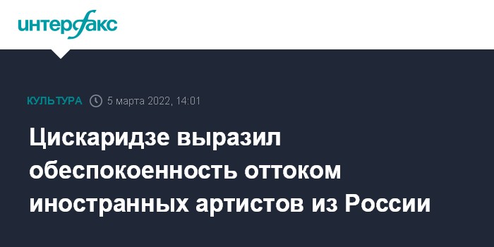 Москва. 5 марта. INTERFAX.RU - Ректор Академии русского балета имени Вагановой, балетмейстер Николай Цискаридзе заявил, что иностранные артисты и студенты начали уезжать из России, и культура может столкнуться с кадровыми проблемами.
