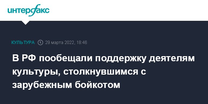 Москва. 29 марта. INTERFAX.RU - Правительство РФ находится в постоянном контакте с деятелями культуры, которые подвергаются за рубежом бойкоту из-за своей позиции, они могут рассчитывать на полную поддержку, заявил премьер-министр России Михаил Мишустин.