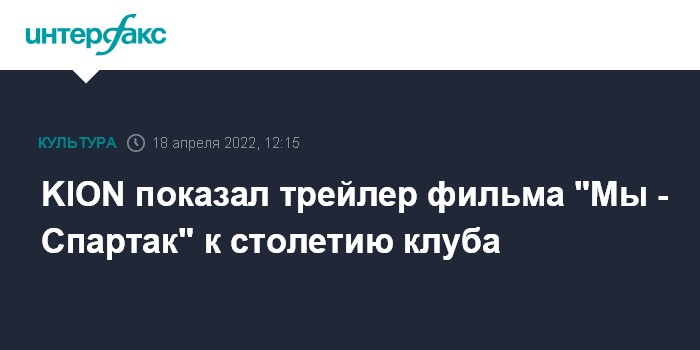 Москва. 18 апреля. INTERFAX.RU - Онлайн-кинотеатр KION представил трейлер документального проекта "Мы - Спартак", приуроченного ко дню рождения клуба.