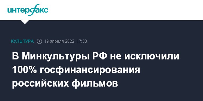 В Минкультуры РФ не исключили 100% госфинансирования российских фильмов