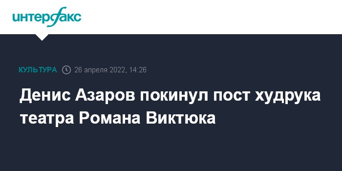 Москва. 26 апреля. INTERFAX.RU - Художественный руководитель театра Романа Виктюка Денис Азаров принял решение покинуть свой пост, сообщили "Интерфаксу" в театре.