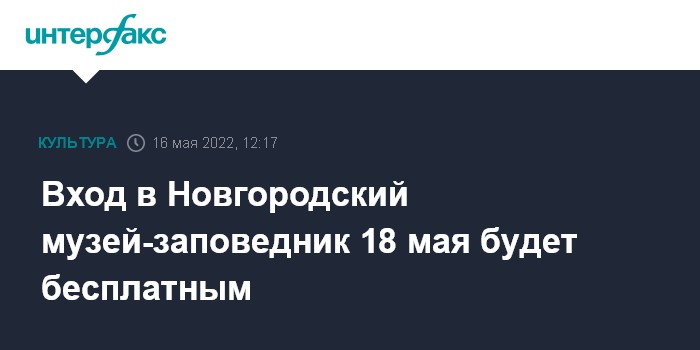 Вход в Новгородский музей-заповедник 18 мая будет бесплатным