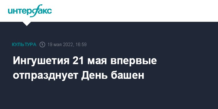 Москва. 19 мая. INTERFAX.RU - В Ингушетии 21 мая впервые отметят новый праздник - День ингушских башен. Его будут праздновать каждый год в третью субботу мая, сообщил "Интерфаксу " представитель правительства республики.