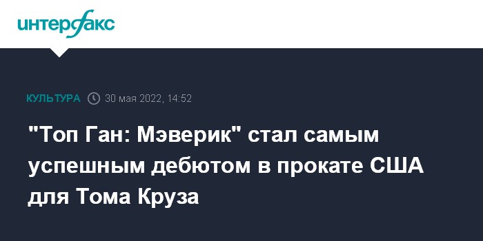 "Топ Ган: Мэверик" стал самым успешным дебютом в прокате США для Тома Круза