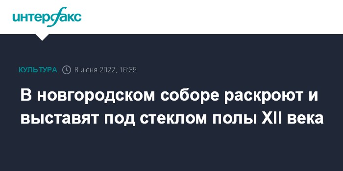Москва. 8 июня. INTERFAX.RU - В соборе Рождества Богородицы в Великом Новгороде в ходе реставрации частично раскроют полы XII века и поместят их под стекло, сообщили "Интерфаксу" в пресс-службе Новгородского государственного музея-заповедника, в ведении которого находится собор.